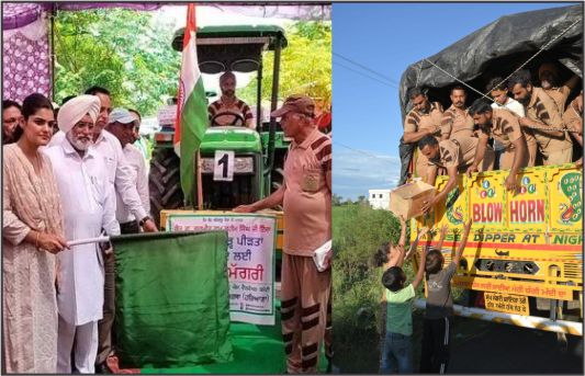 ਡੇਰਾ ਸਿਰਸਾ ਮੁਖੀ ਸੰਤ ਡਾ ਗੁਰਮੀਤ ਰਾਮ ਰਹੀਮ ਸਿੰਘ ਵੱਲੋਂ ਦਿੱਤੇ ਸੱਦੇ ਤਹਿਤ ਰਾਹਤ ਸਮੱਗਰੀ ਵੰਡਣ ਦਾ ਫੈਸਲਾ ਹੋਇਆ ਸੀ। ਇਸੇ ਪ੍ਰੋਗਰਾਮ ਦੇ ਅਧਾਰ ਤੇ ਪੀੜਤ ਪ੍ਰੀਵਾਰਾਂ ਤੱਕ ਰਾਹਤ ਸਮੱਗਰੀ ਪੁਜਦੀ ਕਰਨ ਲਈ ਵੱਖ ਵੱਖ ਟੀਮਾਂ ਬਣਾਈਆਂ ਗਈਆਂ ਹਨ ਜਿੰਨ੍ਹਾਂ ਦੀ ਅਗਵਾਈ ਡੇਰਾ ਸਿਰਸਾ ਦੇ ਸੀਨੀਅਰ ਆਗੂ ਪ੍ਰਬੰਧਕਾਂ ਵੱਲੋਂ ਕੀਤੀ ਜਾ ਰਹੀ ਹੈ। ਫਾਜ਼ਿਲਕਾ ਜਿਲ੍ਹੇ ਵਿੱਚ ਅੱਜ ਸ਼ਾਹ ਸਤਿਨਾਮ ਜੀ ਵੈਲਫੇਅਰ ਕਮੇਟੀ ਦੇ ਵਲੰਟੀਅਰਾਂ ਨੇ ਰਾਹਤ ਸਮੱਗਰੀ ਵੰਡਣ ਦਾ ਕਾਰਜ ਸ਼ੁਰੂ ਕੀਤਾ ਹੈ। ਜਿਲ੍ਹਾ ਪ੍ਰਸ਼ਾਸ਼ਨ ਤਰਫੋਂ ਰਾਹਤ ਸਮੱਗਰੀ ਲਿਜਾਣ ਵਾਲੀਆਂ ਇਸ ਕਾਫਲੇ ਦੀਆਂ 33 ਟਰਾਲੀਆਂ ਨੂੰ ਐਮਐਸਜੀ ਡੇਰਾ ਸੱਚਾ ਸੌਦਾ ਤੇ ਮਾਨਵਤਾ ਭਲਾਈ ਕੇਂਦਰ ਫਾਜ਼ਿਲਕਾ ਤੋਂ ਨਾਇਬ ਤਹਿਸੀਲਦਾਰ ਫਾਜ਼ਿਲਕਾ ਮੈਡਮ ਅਰਾਧਨਾ ਖੋਸਲਾ ਨੇ ਹਰੀ ਝੰਡੀ ਦਿਖਾ ਕੇ ਰਵਾਨਾ ਕੀਤਾ ਹੈ।