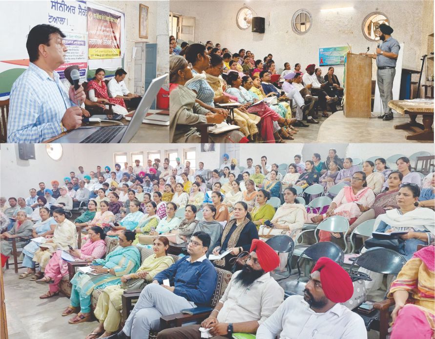 ਸਿੱਖਿਆ ਮੰਤਰੀ ਹਰਜੋਤ ਸਿੰਘ ਬੈਂਸ ਦੀ ਰਹਿਨੁਮਾਈ ਹੇਠ ਡਾਇਰੈਕਟਰ ਵਿੱਦਿਅਕ ਖੋਜ ਅਤੇ ਸਿਖਲਾਈ ਪ੍ਰੀਸ਼ਦ ਪੰਜਾਬ ਕਿਰਨ ਸ਼ਰਮਾ ਪੀ.ਸੀ.ਐੱਸ ਦੇ ਦਿਸ਼ਾ-ਨਿਰਦੇਸ਼ ਅਨੁਸਾਰ ਜ਼ਿਲ੍ਹਾ ਪਟਿਆਲਾ ਦੇ ਸਮੂਹ ਬਲਾਕਾਂ ਦੇ ਸਰਕਾਰੀ ਮਿਡਲ, ਹਾਈ ਅਤੇ ਸੀਨੀਅਰ ਸੈਕੰਡਰੀ ਸਕੂਲਾਂ ਦੇ ਪ੍ਰਿੰਸੀਪਲਾਂ, ਹੈੱਡ ਮਾਸਟਰਾਂ, ਹੈੱਡ ਮਿਸਟ੍ਰੈਸਾਂ ਅਤੇ ਮਿਡਲ ਸਕੂਲ ਇੰਚਾਰਜਾਂ ਲਈ ਕਿਸ਼ੋਰ ਸਿੱਖਿਆ ਪ੍ਰੋਗਰਾਮ ਅਤੇ ਰਾਸ਼ਟਰੀ ਜਨਸੰਖਿਆ ਸਿੱਖਿਆ ਪ੍ਰੋਗਰਾਮ ਤਹਿਤ ਇੱਕ ਰੋਜਾ ਸਿਖਲਾਈ ਵਰਕਸ਼ਾਪ ਦੇ ਦੂਜੇ ਫ਼ੇਜ਼ ਦਾ ਆਯੋਜਨ 23 ਤੋਂ 26 ਸਤੰਬਰ ਤੱਕ ਪੀ.ਐਮ. ਸ੍ਰੀ ਸਸਸਸ ਮਲਟੀਪਰਪਜ਼ ਸਕੂਲ, ਪਾਸੀ ਰੋਡ ਵਿਖੇ ਕੀਤਾ ਜਾ ਰਿਹਾ ਹੈ। ਇਸ ਵਰਕਸ਼ਾਪ ਵਿੱਚ ਜ਼ਿਲ੍ਹਾ ਸਿੱਖਿਆ ਅਫ਼ਸਰ ਸੈਕੰਡਰੀ ਸਿੱਖਿਆ ਪਟਿਆਲਾ ਸੰਜੀਵ ਸ਼ਰਮਾ ਨੇ ਅੱਜ ਮੌਜੂਦ ਸਮੂਹ ਸਕੂਲ ਮੁਖੀਆਂ ਨੂੰ ਸੰਬੋਧਨ ਕਰਦਿਆਂ ਕਿਹਾ ਕਿ ਸਰਕਾਰ ਦੁਆਰਾ ਵਿਦਿਆਰਥੀਆਂ ਦੀ ਸਰੀਰਕ ਅਤੇ ਮਾਨਸਿਕ ਸਿਹਤ ਸੰਭਾਲ ਲਈ ਬਹੁਤ ਸਾਰੀਆਂ ਯੋਜਨਾਵਾਂ ਲਾਗੂ ਕੀਤੀਆਂ ਜਾ ਰਹੀਆਂ ਹਨ। ਇਹਨਾਂ ਦਾ ਲਾਭ ਹਰੇਕ ਵਿਦਿਆਰਥੀ ਤੱਕ ਸਹੀ ਢੰਗ ਨਾਲ ਪਹੁੰਚੇ ਇਸ ਲਈ ਸਕੂਲ ਮੁੱਖੀ ਆਪਣੇ ਅਧਿਆਪਕਾਂ ਨਾਲ ਮਿਲ ਕੇ ਵਿਸ਼ੇਸ਼ ਉਪਰਾਲੇ ਕਰਨ।