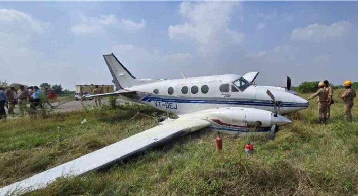 ਸੂਤਰਾਂ ਦਾ ਕਹਿਣਾ ਹੈ ਕਿ ਜੈੱਟ ਸਰਵਿਸ ਏਵੀਏਸ਼ਨ ਪ੍ਰਾਈਵੇਟ ਲਿਮਟਿਡ ਦਾ ਇਹ ਪ੍ਰਾਈਵੇਟ ਜਹਾਜ਼ ਖਿਮਸੇਪੁਰ ਉਦਯੋਗਿਕ ਖੇਤਰ ਵਿੱਚ ਬਣ ਰਹੀ ਇੱਕ ਬੀਅਰ ਫੈਕਟਰੀ ਦੇ ਅਧਿਕਾਰੀਆਂ ਨੂੰ ਲੈ ਕੇ ਵਾਪਸ ਭੋਪਾਲ ਲਈ ਜਾ ਰਿਹਾ ਸੀ। ਲੈਂਡਿੰਗ ਦੌਰਾਨ ਜਹਾਜ਼ ਰਨਵੇਅ ‘ਤੇ ਕਰੀਬ 400 ਮੀਟਰ ਤੱਕ ਦੌੜਿਆ, ਪਰ ਫਿਰ ਅਚਾਨਕ ਬੇਕਾਬੂ ਹੋ ਕੇ ਨੇੜੇ ਦੀਆਂ ਝਾੜੀਆਂ ਵਿੱਚ ਜਾ ਵੜਿਆ।