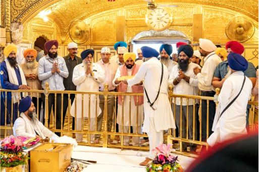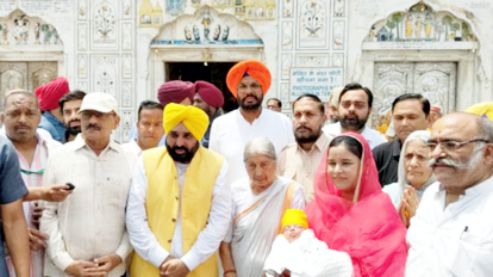 ਸਿੱਖ ਧਰਮ ਦੇ ਪ੍ਰਥਮ ਪਾਤਸ਼ਾਹ ਸ੍ਰੀ ਗੁਰੂ ਨਾਨਕ ਦੇਵ ਜੀ ਦੇ ਪ੍ਰਕਾਸ਼ ਪੁਰਬ ਮੌਕੇ ਪੰਜਾਬ ਦੇ ਮੁੱਖ ਮੰਤਰੀ ਭਗਵੰਤ ਸਿੰਘ ਮਾਨ ਆਪਣੀ ਪਤਨੀ ਗੁਰਪ੍ਰੀਤ ਕੌਰ ਮਾਨ ਨਾਲ ਅੱਜ ਸੱਚਖੰਡ ਸ੍ਰੀ ਹਰਿਮੰਦਰ ਸਾਹਿਬ ਵਿਖੇ ਨਤਮਸਤਕ ਹੋਏ। ਮੁੱਖ ਮੰਤਰੀ ਦਮਪਤੀ ਨੇ ਗੁਰੂਘਰ ਵਿੱਚ ਮੱਥਾ ਟੇਕਿਆ, ਕੀਰਤਨ ਸੁਣਿਆ ਤੇ ਰਾਜ ਦੀ ਖੁਸ਼ਹਾਲੀ, ਸ਼ਾਂਤੀ ਅਤੇ ਚੜ੍ਹਦੀ ਕਲਾ ਲਈ ਅਰਦਾਸ ਕੀਤੀ।