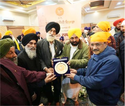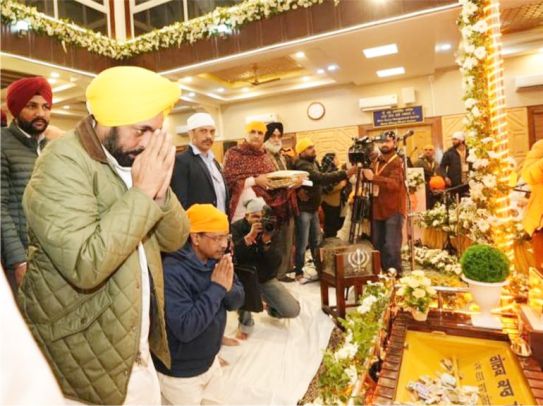 ਨਗਰ ਕੀਰਤਨ ਦੀ ਆਰੰਭਤਾ ਮੌਕੇ ਮੁੱਖ ਮੰਤਰੀ ਭਗਵੰਤ ਮਾਨ ਅਤੇ ਅਰਵਿੰਦ ਕੇਜਰੀਵਾਲ ਹੋਏ ਨਤਮਸਤਕ