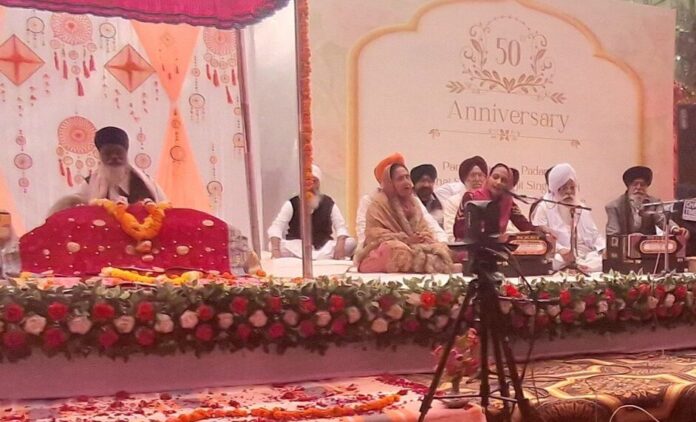 ਪਟਿਆਲਾ, 20 ਨਵੰਬਰ (ਰਾਜੇਸ਼ ਕੁਮਾਰ): ਚੜ੍ਹਦੀਕਲਾ ਟਾਈਮ ਟੀ.ਵੀ. ਦੇ ਚੇਅਰਮੈਨ ਪਦਮ ਸ੍ਰੀ ਸ. ਜਗਜੀਤ ਸਿੰਘ ਦਰਦੀ ਅਤੇ ਉਨ੍ਹਾਂ ਦੀ ਧਰਮ ਸੁਪਤਨੀ ਸੇਵਾਰਤਨ ਸਰਦਾਰਨੀ ਜਸਵਿੰਦਰ ਕੌਰ ਦਰਦੀ ਦੀ 50ਵੀਂ ਵਰੇਗੰਢ ਦੇ ਪਵਿੱਤਰ ਮੌਕੇ ‘ਤੇ ਵਿਸ਼ੇਸ਼ ਕੀਰਤਨ ਸਮਾਗਮ ਦਾ ਆਯੋਜਨ ਕੀਤਾ ਗਿਆ। ਸਮਾਗਮ ਵਿੱਚ ਪੰਥ ਦੇ ਪ੍ਰਸਿੱਧ ਕਥਾਵਾਚਕ ਗਿਆਨੀ ਸਾਹਿਬ ਸਿੰਘ ਮਾਰਕੰਡੇ ਵਾਲਿਆਂ ਵੱਲੋਂ ਗੁਰਬਾਣੀ ਜਸ ਰਾਹੀਂ ਸੰਗਤ ਨੂੰ ਨਿਹਾਲ ਕੀਤਾ ਗਿਆ। ਉਪਰੰਤ ਦੁਖਨਿਵਾਰਨ ਸਾਹਿਬ ਦੇ ਹੈੱਡ ਗ੍ਰੰਥੀ ਗਿਆਨੀ ਪਰਨਾਮ ਸਿੰਘ ਨੇ ਸਰਬੱਤ ਦੇ ਭਲੇ ਲਈ ਅਰਦਾਸ ਕੀਤੀ।