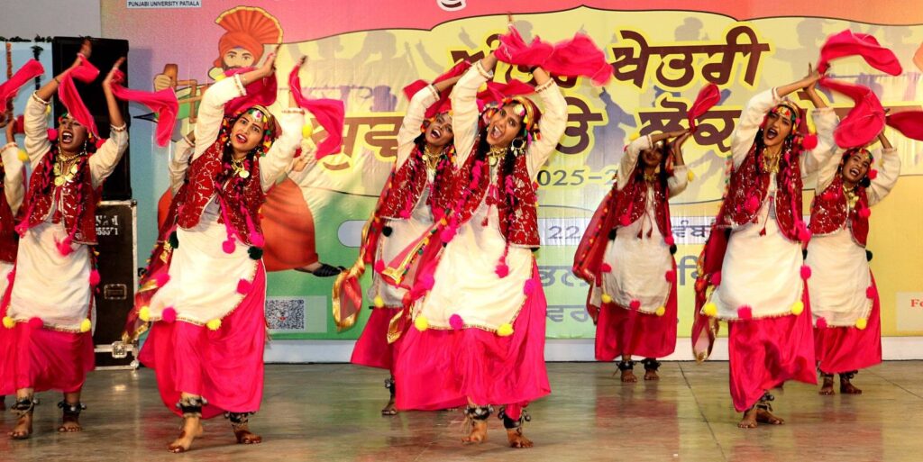 ਪਟਿਆਲਾ: (ਜਗਜੀਤ ਸਿੰਘ) : ਪੰਜਾਬੀ ਯੂਨੀਵਰਸਿਟੀ ਵਿਚ ਚੱਲ ਰਹੇ ਅੰਤਰ ਖੇਤਰੀ ਯੁਵਕ ਅਤੇ ਲੋਕ ਮੇਲੇ ਵਿੱਚ ਦੂਜੇ ਦਿਨ ਕੈਂਪਸ ਵਿੱਚ ਭਰਪੂਰ ਰੌਣਕਾਂ ਲੱਗੀਆਂ ਰਹੀਆਂ। ਅੱਜ ਕੁੜੀਆਂ ਦੇ ਲੋਕ ਨਾਚ ਲੁੱਡੀ ਅਤੇ ਮੁੰਡਿਆਂ ਦੇ ਲੋਕ ਨਾਚ ਝੂੰਮਰ ਦੇ ਮੁਕਾਬਲੇ ਕਰਵਾਏ ਗਏ ਜੋ ਸਾਰਿਆਂ ਦੇ ਖਿੱਚ ਦੇ ਕੇਂਦਰ ਬਣੇ।