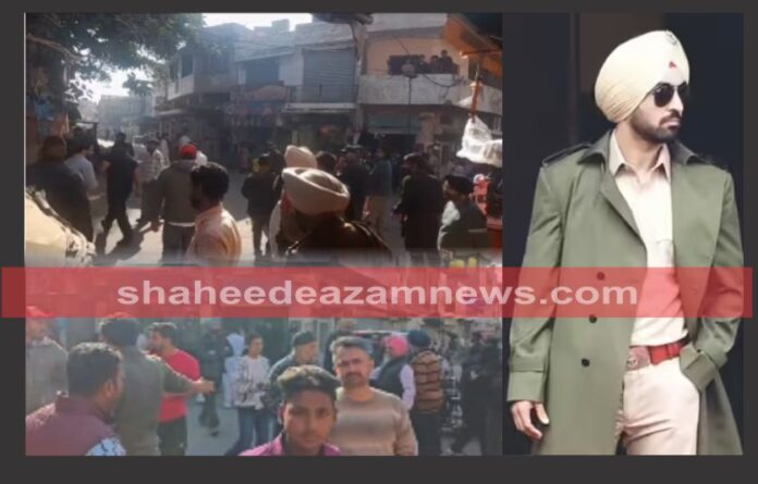 ਪਟਿਆਲਾ, ਮੰਗਲਵਾਰ: 9 ਦਸੰਬਰ: (ਗੁਰਪ੍ਰੀਤ ਸਿੰਘ) ਦਿਲਜੀਤ ਦੋਸਾਂਝ ਦੀ ਨਵੀਂ ਫਿਲਮ ਦੀ ਸ਼ੂਟਿੰਗ ਦੌਰਾਨ ਪਟਿਆਲਾ ਦੇ ਮਸ਼ਹੂਰ ਬਾਂਸਾਂ ਵਾਲੇ ਬਾਜ਼ਾਰ ਵਿੱਚ ਅਚਾਨਕ ਹੰਗਾਮਾ ਮਚ ਗਿਆ। ਸਥਾਨਕ ਵਪਾਰੀਆਂ ਨੇ ਪੁਲਿਸ ਅਤੇ ਫਿਲਮ ਯੂਨਿਟ ਵਿਰੁੱਧ ਤਿੱਖਾ ਰੋਸ ਪ੍ਰਗਟਾਉਂਦੇ ਹੋਏ ਵਿਰੋਧ ਪ੍ਰਦਰਸ਼ਨ ਕੀਤਾ। ਵਪਾਰੀਆਂ ਨੇ ਇਲਜ਼ਾਮ ਲਗਾਇਆ ਕਿ ਬਿਨਾਂ ਪੂਰਵ ਜਾਣਕਾਰੀ ਦਿੱਤੇ ਬਾਜ਼ਾਰ ਨੂੰ ਸੀਲ ਕਰਕੇ ਉਨ੍ਹਾਂ ਦੇ ਕਾਰੋਬਾਰ ਨੂੰ ਬੁਰੀ ਤਰ੍ਹਾਂ ਪ੍ਰਭਾਵਿਤ ਕੀਤਾ ਗਿਆ।