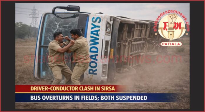ਸਿਰਸਾ: 20 ਦਸੰਬਰ: (ਛਤਰਪਾਲ ਸਿੰਘ):ਹਰਿਆਣਾ ਦੇ ਸਿਰਸਾ ਜ਼ਿਲ੍ਹੇ ਵਿੱਚ ਇੱਕ ਚੱਲਦੀ ਰੋਡਵੇਜ਼ ਬੱਸ ਵਿੱਚ ਡਰਾਈਵਰ ਅਤੇ ਕੰਡਕਟਰ ਵਿਚਕਾਰ ਹੋਈ ਝੜਪ ਕਾਰਨ ਵੱਡਾ ਹਾਦਸਾ ਵਾਪਰ ਗਿਆ। ਝਗੜੇ ਦੌਰਾਨ ਡਰਾਈਵਰ ਵੱਲੋਂ ਕੰਟਰੋਲ ਗੁਆ ਲੈਣ ਕਾਰਨ ਬੱਸ ਬੇਕਾਬੂ ਹੋ ਕੇ ਸੜਕ ਤੋਂ ਉਤਰ ਗਈ ਅਤੇ ਇੱਕ ਖੇਤ ਵਿੱਚ ਜਾ ਪਲਟੀ। ਖੁਸ਼ਕਿਸਮਤੀ ਨਾਲ ਕਿਸੇ ਵੀ ਯਾਤਰੀ ਦੇ ਜਾਨੀ ਨੁਕਸਾਨ ਦੀ ਕੋਈ ਸੂਚਨਾ ਨਹੀਂ ਹੈ।