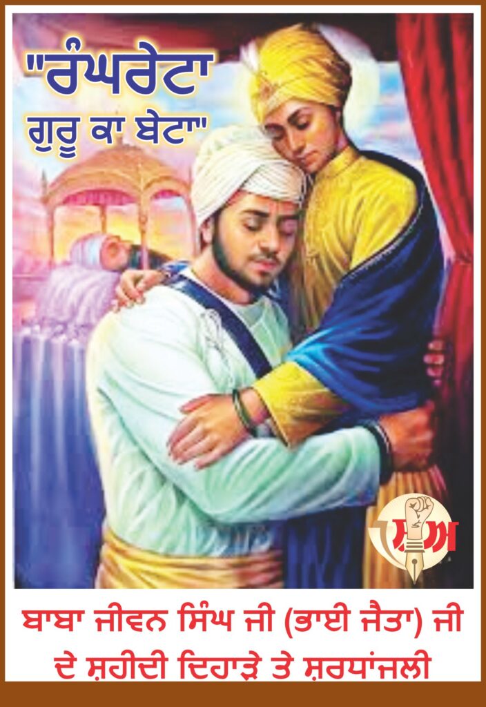- ਗੁਰੂ ਜੀ ਦਾ ਸਨਮਾਨ:ਜਦੋਂ ਭਾਈ ਜੈਤਾ ਜੀ ਅਨੰਦਪੁਰ ਸਾਹਿਬ ਪਹੁੰਚੇ ਅਤੇ ਗੁਰੂ ਗੋਬਿੰਦ ਸਿੰਘ ਜੀ ਦੇ ਚਰਨਾਂ ਵਿੱਚ ਸੀਸ ਰੱਖਿਆ, ਤਾਂ ਗੁਰੂ ਜੀ ਨੇ ਉਨ੍ਹਾਂ ਨੂੰ ਗਲੇ ਲਗਾ ਲਿਆ। ਗੁਰੂ ਸਾਹਿਬ ਨੇ ਉਸ ਸਮੇਂ ਸਮਾਜ ਵੱਲੋਂ ਨੀਵੀਆਂ ਸਮਝੀਆਂ ਜਾਂਦੀਆਂ ਜਾਤਾਂ ਨੂੰ ਸਭ ਤੋਂ ਵੱਡਾ ਸਨਮਾਨ ਦਿੰਦੇ ਹੋਏ ਕਿਹਾ, “ਰੰਘਰੇਟਾ ਗੁਰੂ ਕਾ ਬੇਟਾ” (ਰੰਘਰੇਟੇ ਗੁਰੂ ਦੇ ਪੁੱਤਰ ਹਨ)।