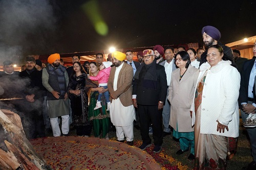 ਪੰਜਾਬ ਦੇ ਮੁੱਖ ਮੰਤਰੀ ਭਗਵੰਤ ਮਾਨ, ਰਾਜਪਾਲ ਗੁਲਾਬ ਚੰਦ ਕਟਾਰੀਆ ਅਤੇ ਹਰਿਆਣਾ ਦੇ ਮੁੱਖ ਮੰਤਰੀ ਸ਼੍ਰੀ ਨਾਇਬ ਸਿੰਘ ਸੈਣੀ ਨਾਲ ਪਰੀਵਾਰ ਸਣੇ ਲੋਹੜੀ ਦਾ ਤਿਉਹਾਰ ਮਨਾਉਂਦੇ ਨਜ਼ਰ ਆਏ।