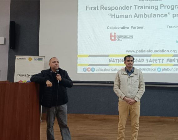 ਪਟਿਆਲਾ: 21 ਜਨਵਰੀ (ਸੁਰਿੰਦਰ ਕੌਸ਼ਲ) : ਰਾਸ਼ਟਰੀ ਸੜਕ ਸੁਰੱਖਿਆ ਮਹੀਨੇ ਦੇ ਹਿੱਸੇ ਵਜੋਂ, ਪਟਿਆਲਾ ਫਾਊਂਡੇਸ਼ਨ ਵੱਲੋਂ ਆਪਣੇ ‘ਹਿਊਮਨ ਐਂਬੂਲੈਂਸ ਪ੍ਰੋਗਰਾਮ’ ਅਧੀਨ ਥਾਪਰ ਇੰਸਟੀਚਿਊਟ ਆਫ਼ ਇੰਜੀਨੀਅਰਿੰਗ ਐਂਡ ਟੈਕਨਾਲੋਜੀ ਵਿਖੇ ‘ਫਸਟ ਰਿਸਪੌਂਡਰ ਅਤੇ ਫਸਟ ਏਡ ਟ੍ਰੇਨਿੰਗ’ ਵਰਕਸ਼ਾਪ ਦਾ ਸਫਲਤਾਪੂਰਵਕ ਆਯੋਜਨ ਕੀਤਾ ਗਿਆ। ਇਸ ਪ੍ਰੋਗਰਾਮ ਦਾ ਮੁੱਖ ਉਦੇਸ਼ ਸੜਕ ਹਾਦਸਿਆਂ ਦੌਰਾਨ ਕੀਮਤੀ ਜਾਨਾਂ ਬਚਾਉਣ ਲਈ ਨੌਜਵਾਨਾਂ ਨੂੰ ਲੋੜੀਂਦੀਆਂ ਜੀਵਨ-ਰੱਖਿਅਕ ਮੁਹਾਰਤਾਂ ਪ੍ਰਦਾਨ ਕਰਨਾ ਹੈ।