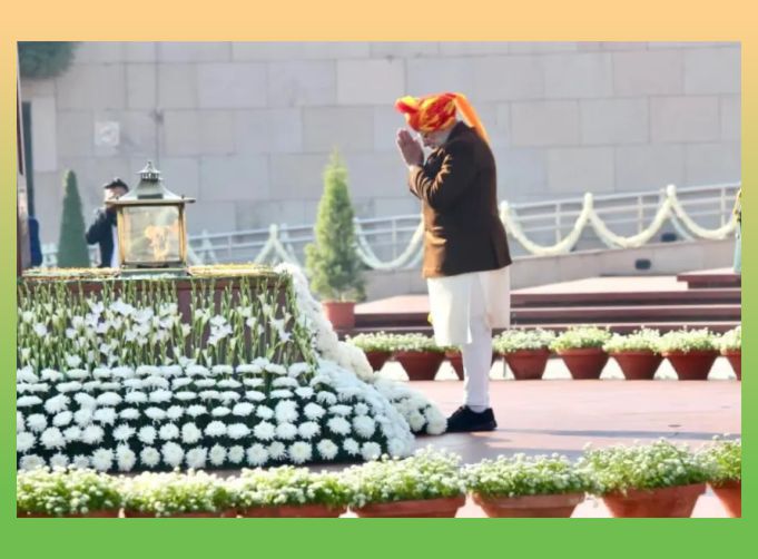 ਨਵੀਂ ਦਿੱਲੀ, 26 ਜਨਵਰੀ 2026 (ਮਨੋਜ ਵਰਮਾ) : 77ਵੇਂ ਗਣਤੰਤਰ ਦਿਵਸ ਦੇ ਸ਼ੁਭ ਮੌਕੇ ‘ਤੇ ਪ੍ਰਧਾਨ ਮੰਤਰੀ ਨਰਿੰਦਰ ਮੋਦੀ ਨੇ ਅੱਜ ‘ਰਾਸ਼ਟਰੀ ਯੁੱਧ ਸਮਾਰਕ’ (National War Memorial) ਵਿਖੇ ਦੇਸ਼ ਦੀ ਰੱਖਿਆ ਲਈ ਆਪਣੀਆਂ ਜਾਨਾਂ ਨਿਛਾਵਰ ਕਰਨ ਵਾਲੇ ਸ਼ਹੀਦ ਸੈਨਿਕਾਂ ਨੂੰ ਨਿੱਘੀ ਸ਼ਰਧਾਂਜਲੀ ਭੇਟ ਕੀਤੀ। ਪ੍ਰਧਾਨ ਮੰਤਰੀ ਨੇ ਦੇਸ਼ ਦੀ ਅਗਵਾਈ ਕਰਦਿਆਂ ਸਮਾਰਕ ‘ਤੇ ਫੁੱਲਮਾਲਾ ਅਰਪਿਤ ਕੀਤੀ।