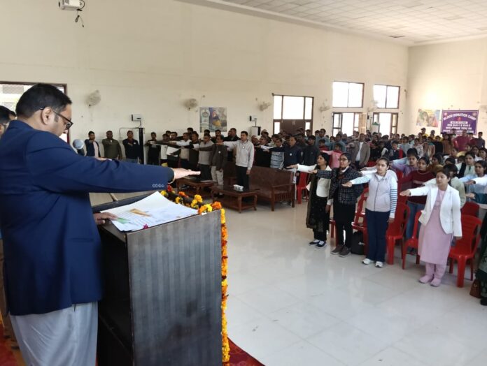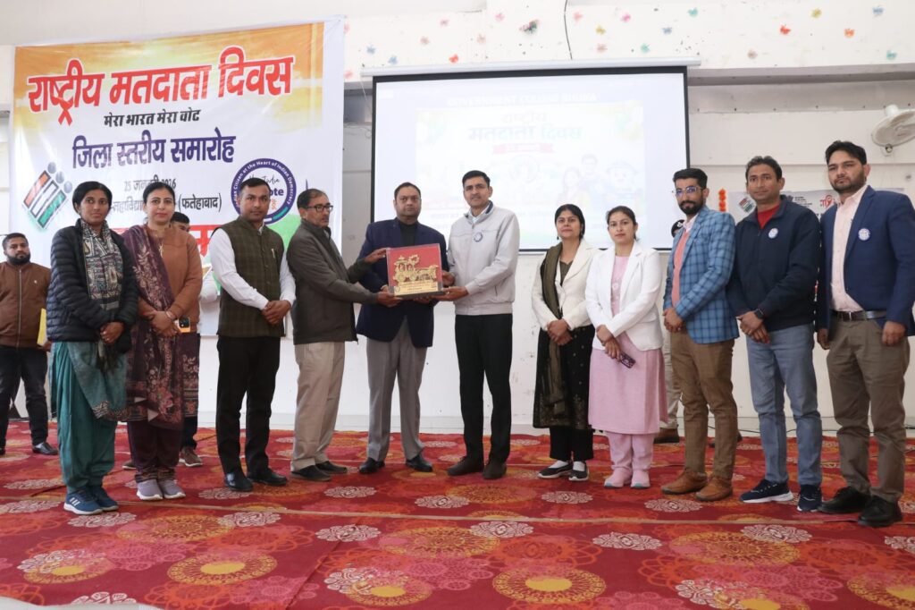 ਭੂਨਾ, 26 ਜਨਵਰੀ: (ਸੰਜੀਵ ਸ਼ਰਮਾ) : ਸਰਕਾਰੀ ਕਾਲਜ ਭੂਨਾ ਵਿਖੇ 16ਵਾਂ ਰਾਸ਼ਟਰੀ ਵੋਟਰ ਦਿਵਸ ਬੜੇ ਉਤਸ਼ਾਹ ਨਾਲ ਮਨਾਇਆ ਗਿਆ। ਇਸ ਪ੍ਰੋਗਰਾਮ ਵਿੱਚ ਕਾਰਜਕਾਰੀ ਡਿਪਟੀ ਕਮਿਸ਼ਨਰ ਅਨੁਰਾਗ ਢਾਲੀਆ ਨੇ ਮੁੱਖ ਮਹਿਮਾਨ ਵਜੋਂ ਸ਼ਿਰਕਤ ਕੀਤੀ। ਉਨ੍ਹਾਂ ਨੇ ਨੌਜਵਾਨਾਂ ਨੂੰ ਲੋਕਤੰਤਰ ਦੀ ਸ਼ਕਤੀ ਬਾਰੇ ਜਾਗਰੂਕ ਕਰਦਿਆਂ ਵੋਟ ਦੀ ਮਹੱਤਤਾ ‘ਤੇ ਜ਼ੋਰ ਦਿੱਤਾ।