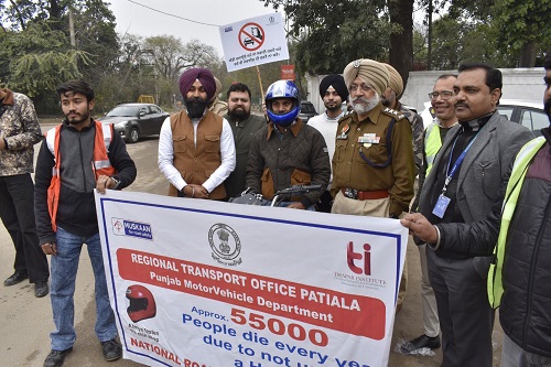 ਪਟਿਆਲਾ, 28 ਜਨਵਰੀ: : (ਮਨੋਜ ਵਰਮਾ) : ਰਾਸ਼ਟਰੀ ਸੜਕ ਸੁਰੱਖਿਆ ਮਿਸ਼ਨ-2026 ਦੇ ਤਹਿਤ ਖੇਤਰੀ ਆਵਾਜਾਈ ਦਫ਼ਤਰ (RTO), ਪਟਿਆਲਾ ਵੱਲੋਂ ਅੱਜ ਸ਼ਹਿਰ ਵਿੱਚ ਦੋ ਵੱਡੀਆਂ ਜਾਗਰੂਕਤਾ ਪਹਿਲਕਦਮੀਆਂ ਕੀਤੀਆਂ ਗਈਆਂ। ‘ਮੁਸਕਾਨ ਫਾਊਂਡੇਸ਼ਨ ਫਾਰ ਰੋਡ ਸੇਫਟੀ’ ਦੇ ਸਹਿਯੋਗ ਨਾਲ ਚਲਾਈ ਗਈ ਇਸ ਮੁਹਿੰਮ ਦਾ ਮੁੱਖ ਮਕਸਦ ਲੋਕਾਂ ਨੂੰ ਸੜਕਾਂ ‘ਤੇ ਜ਼ਿੰਮੇਵਾਰ ਵਿਵਹਾਰ ਅਪਣਾਉਣ ਲਈ ਪ੍ਰੇਰਿਤ ਕਰਨਾ ਸੀ।