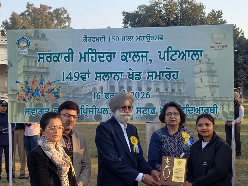 ਪਟਿਆਲਾ:16 ਫਰਵਰੀ, 2026 (ਛਤਰਪਾਲ ਸਿੰਘ) : ਉੱਤਰੀ ਭਾਰਤ ਦੀ ਨਾਮਵਰ ਵਿਦਿਅਕ ਸੰਸਥਾ ਸਰਕਾਰੀ ਮਹਿੰਦਰਾ ਕਾਲਜ, ਪਟਿਆਲਾ ਵੱਲੋਂ ਆਪਣਾ 149ਵਾਂ ਸਲਾਨਾ ਖੇਡ ਸਮਾਰੋਹ ਬਹੁਤ ਹੀ ਉਤਸ਼ਾਹ ਅਤੇ ਸ਼ਾਨੋ-ਸ਼ੌਕਤ ਨਾਲ ਮਨਾਇਆ ਗਿਆ। ਇਹ ਸਮਾਗਮ ਕਾਲਜ ਦੀ ਸਥਾਪਨਾ ਦੇ 150 ਸਾਲ ਪੂਰੇ ਹੋਣ ਦੇ ਜਸ਼ਨਾਂ ਦੀ ਲੜੀ ਵਿੱਚ ਇੱਕ ਅਹਿਮ ਪੜਾਅ ਵਜੋਂ ਦੇਖਿਆ ਜਾ ਰਿਹਾ ਹੈ।