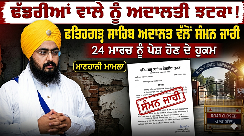ਫਤਿਹਗੜ੍ਹ ਸਾਹਿਬ: 16 ਮਾਰਚ, 2026 (ਮਨੋਜ ਵਰਮਾ): ਪ੍ਰਸਿੱਧ ਪ੍ਰਚਾਰਕ ਰਣਜੀਤ ਸਿੰਘ ਢੱਡਰੀਆਂ ਵਾਲੇ ਇੱਕ ਵਾਰ ਫਿਰ ਕਾਨੂੰਨੀ ਸ਼ਿਕੰਜੇ ਵਿੱਚ ਫਸਦੇ ਨਜ਼ਰ ਆ ਰਹੇ ਹਨ। ਫਤਿਹਗੜ੍ਹ ਸਾਹਿਬ ਦੀ ਸੈਸ਼ਨ ਅਦਾਲਤ ਨੇ ਇੱਕ ਪੁਰਾਣੇ ਮਾਣਹਾਨੀ ਮਾਮਲੇ ਵਿੱਚ ਉਨ੍ਹਾਂ ਖ਼ਿਲਾਫ਼ ਸੰਮਨ ਜਾਰੀ ਕਰਨ ਦੇ ਹੁਕਮ ਦਿੱਤੇ ਹਨ। ਹੁਣ ਉਨ੍ਹਾਂ ਨੂੰ ਅਦਾਲਤ ਵਿੱਚ ਨਿੱਜੀ ਤੌਰ ‘ਤੇ ਪੇਸ਼ ਹੋ ਕੇ ਜ਼ਮਾਨਤ ਲੈਣੀ ਪਵੇਗੀ।