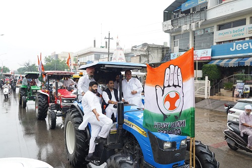 - ट्रैक्टरों समेत कांग्रेसियों का काफिला दुखनिवारण साहिब से पुड्डा दफ्तर की ओर जाता हुआ।