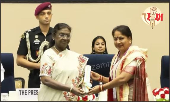 जयपुर, 5 सितंबर शहीद-ए-आज़म ब्यूरो : नई दिल्ली के विज्ञान भवन में शुक्रवार को राष्ट्रीय शिक्षक दिवस के अवसर पर आयोजित भव्य सम्मान समारोह में राष्ट्रपति श्रीमती द्रौपदी मुर्मू ने देशभर से चयनित 45 उत्कृष्ट शिक्षकों को राष्ट्रीय शिक्षक पुरस्कार से सम्मानित किया। समारोह में राजस्थान के राजकीय बालिका उच्च माध्यमिक विद्यालय टपूकड़ा, अलवर की प्रिंसिपल श्रीमती नीलम यादव को भी राष्ट्रीय शिक्षक पुरस्कार से सम्मानित किया गया। प्रतिवर्ष राष्ट्रीय स्तर पर दिए जाने वाले इन पुरस्कारों का उद्देश्य शिक्षा के क्षेत्र में उत्कृष्ट कार्य करने वाले शिक्षकों को उनकी पहचान और सम्मान दिलाने के साथ-साथ अन्य शिक्षकों को प्रेरित करने का भी होता है ताकि शिक्षा की गुणवत्ता में सुधार के साथ-साथ विद्यार्थियों के समग्र विकास में शिक्षक और अधिक योगदान देने की प्रेरणा ले सकें। पुरस्कार प्राप्तकर्ता शिक्षकों को सम्मान स्वरूप 50 हजार नगद, एक पदक और प्रशस्ति पत्र दिया जाता है।