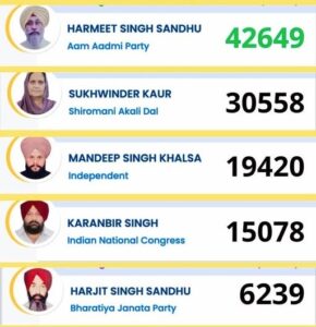 इस जीत के साथ आप ने एक बार फिर मैदान में अपनी मज़बूत मौजूदगी दर्ज करवाई है, जबकि अकाली दल को दूसरे स्थान पर संतोष करना पड़ा।