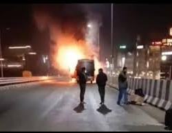 ज़ीरकपुर फ्लाईओवर पर चलती बस में लगी आग, बड़ा हादसा टला—50 यात्री सुरक्षित