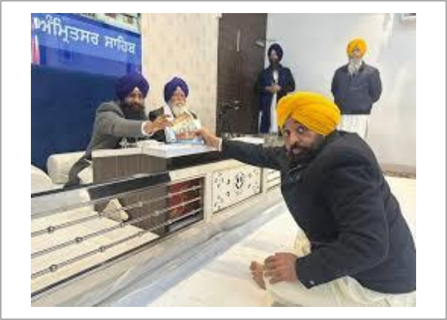 श्री अमृतसर साहिब , 15 जनवरी 2026: पंजाब के मुख्यमंत्री भगवंत मान गुरुवार को श्री अकाल तख्त साहिब के सचिवालय पहुंचे, जहां उन्होंने सिखों की सर्वोच्च धार्मिक संस्था के समक्ष माथा टेका और हालिया विवादों को लेकर सिंह साहिबानों के सामने अपना पक्ष स्पष्ट किया।