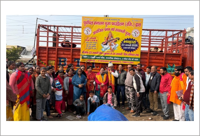अंबाला शहर, 24 जनवरी, 2026: आज अंबाला शहर के सेक्टर  9 के नजदीक लक्ष्मी नगर चौक पर हर वर्ष की तरह पूर्वांचल समाज में बसंत पंचमी के अवसर पर सरस्वती पूजा का कार्यक्रम किया। कार्यक्रम में बड़ी संख्या में पूर्वांचल समाज के परिवारों ने हिस्सा लिया। कार्यक्रम में बतौर मुख्य अतिथि अंबाला नगर निगम की पूर्व मेयर श्रीमति शैलजा संदीप सचदेवा पहुंची और वहां पहुंचने पर पूर्वांचल समाज की कार्यकारी समिति में उनका भव्य स्वागत किया।