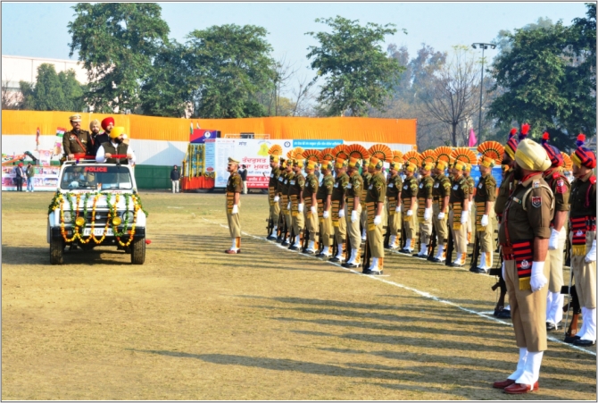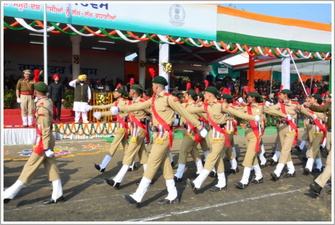 समारोह दौरान परेड कमांडर डी.एस.पी. फतह सिंह बराड़ की अगुवाई में आई.टी.बी.पी., पटियाला पुलिस, पंजाब होम गार्डज, एन.सी.सी, रेड क्रास की सेंट जॉन एम्बूलेंस ब्रिगेड, स्टूडेंट पुलिस कैडेट, स्काउट एंड गाइड एवं आई.आर.बी. के पाइप बैंड की 11 टुकड़ियां मार्च पास्ट में शामिल हुईं।