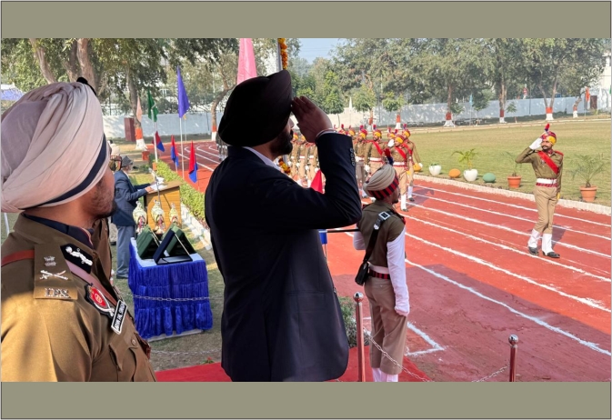 फोटो कैप्शन: पंजाब के जेल मंत्री लालजीत सिंह भुल्लर पंजाब जेल ट्रेनिंग स्कूल, पटियाला में वार्डरों के 100वें बैच की पासिंग आउट परेड के दौरान मुख्य अतिथि के रूप में शामिल होते हुए। उनके साथ एडीजीपी जेल अरुणपाल सिंह और सचिव जेल विभाग सह आईजी मोहम्मद तैयब भी नजर आ रहे हैं।