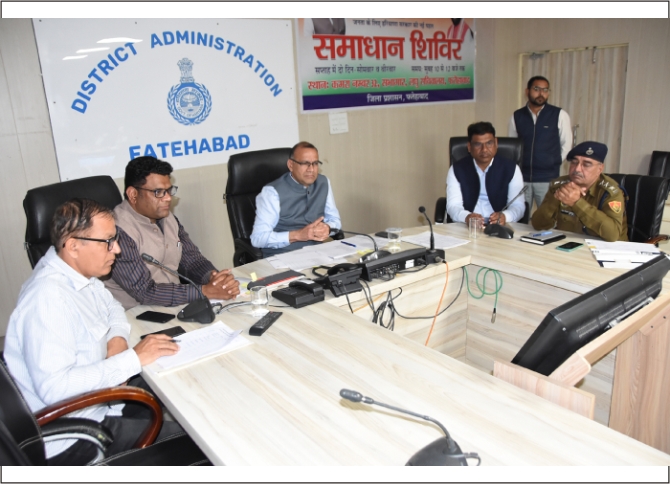 फ़तेहाबाद, 20 फरवरी 2026 (संजीव शर्मा): डीसी डॉ. विवेक भारती ने शुक्रवार को लघु सचिवालय स्थित सभागार में समाधान शिविरों तथा अन्य पोर्टलों के माध्यमों से प्राप्त होने वाली शिकायतों व समस्याओं की समीक्षा बैठक की। उन्होंने कहा कि अधिकारी समाधान शिविरों की शिकायतों को सकारात्मक दृष्टि के साथ निपटाएं तथा संबंधित नागरिक से संवाद कर उन्हें विभाग की कार्यवाही से अवगत कराकर संतुष्ट करें। इससे पहले जनस्वास्थ्य अभियांत्रिकी विभाग के आयुक्त एवं सचिव मोहम्मद शाइन ने वीसी द्वारा सभी जिलों के उपायुक्त की बैठक लेकर आवश्यक दिशा-निर्देश दिए।