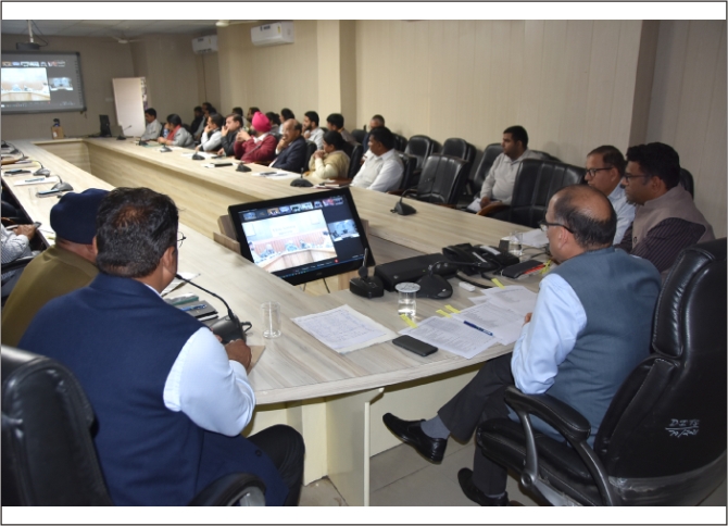 फोटो : लघु सचिवालय के सभागार में आयोजित बैठक की अध्यक्षता करते हुए डीसी डॉ. विवेक भारती।