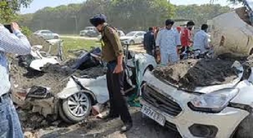 अमृतसर, 1 मार्च 2026: अमृतसर के वेस्टर्न विला बाइपास के पास रविवार दोपहर एक बड़ा सड़क हादसा हो गया। रेत से भरा एक टिपर अचानक अनियंत्रित होकर डिवाइडर पर चढ़ गया और सड़क से गुजर रही तीन कारों पर पलट गया। हादसे में कारें बुरी तरह क्षतिग्रस्त हो गईं।
