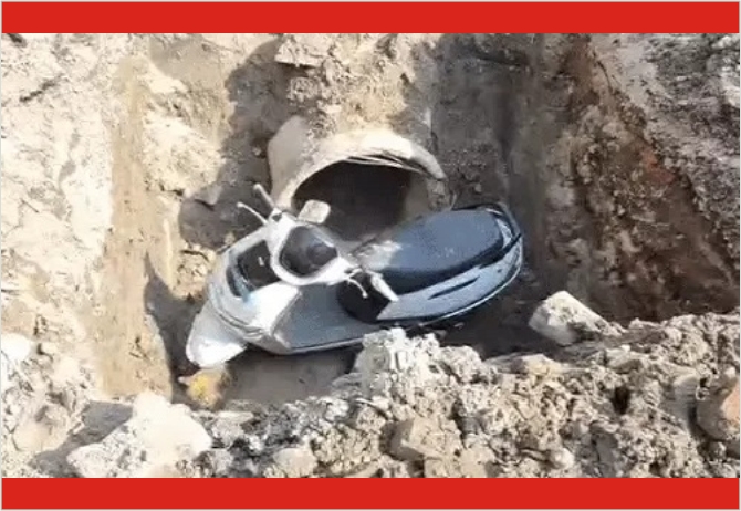 जानकारी के अनुसार बुजुर्ग अपनी ई-एक्टिवा पर सवार होकर घर का सामान लेने निकले थे। मंदिर के पास सड़क इतनी खराब हालत में थी कि अचानक संतुलन बिगड़ने से वह गहरे गड्ढे में जा गिरे। बुजुर्ग के गिरते ही आसपास मौजूद राहगीरों ने तुरंत मदद के लिए दौड़ लगाई और काफी मशक्कत के बाद उन्हें गड्ढे से बाहर निकाला।