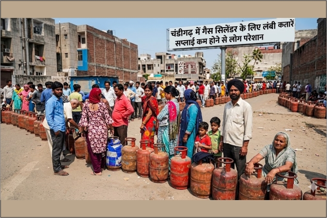 चंडीगढ़ में गैस सिलेंडर के लिए लंबी कतारें, सप्लाई कम होने से लोग परेशान