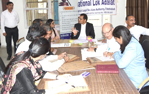 मुख्य न्यायिक दंडाधिकारी एवं जिला विधिक सेवाएं प्राधिकरण की सचिव गायत्री ने बताया कि जिला एवं सत्र न्यायाधीश एवं जिला विधिक सेवाएं प्राधिकरण के अध्यक्ष दीपक अग्रवाल के दिशा निर्देशानुसार जिला स्तर पर एडीजे तरूण सिंगल, प्रधान न्यायाधीश (फैमिली कोर्ट) शिखा, एडीशनल सिविल जज (सीनियर डिवीजन) कम न्यायिक दंडाधिकारी प्रथम श्रेणी विनती, सिविल जज (जूनियर डिवीजन) कम न्यायिक दंडाधिकारी प्रथम श्रेणी जोगिंद्र जांगड़ा, रतिया उपमंडल पर एडीशनल सिविल जज (सीनियर डिवीजन) कम एसडीजेएम सलोनी गुप्ता तथा उपमंडल टोहाना में एडीशनल सिविल जज (सीनियर डिवीजन) कम एसडीजेएम हर्ष कुमार सिंह की कोर्ट में लोक अदालत लगाई गई।